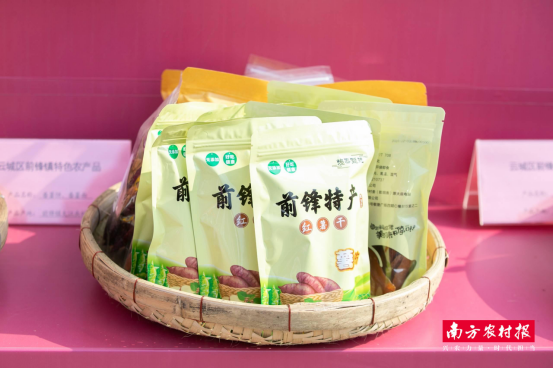 活动现场的“乡村集市”人头攒动,市民游客在各展位前品尝和购买番薯制品及当地土特产。
